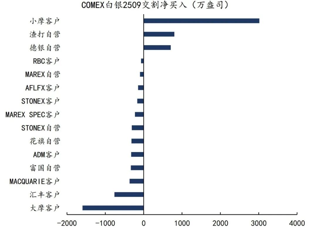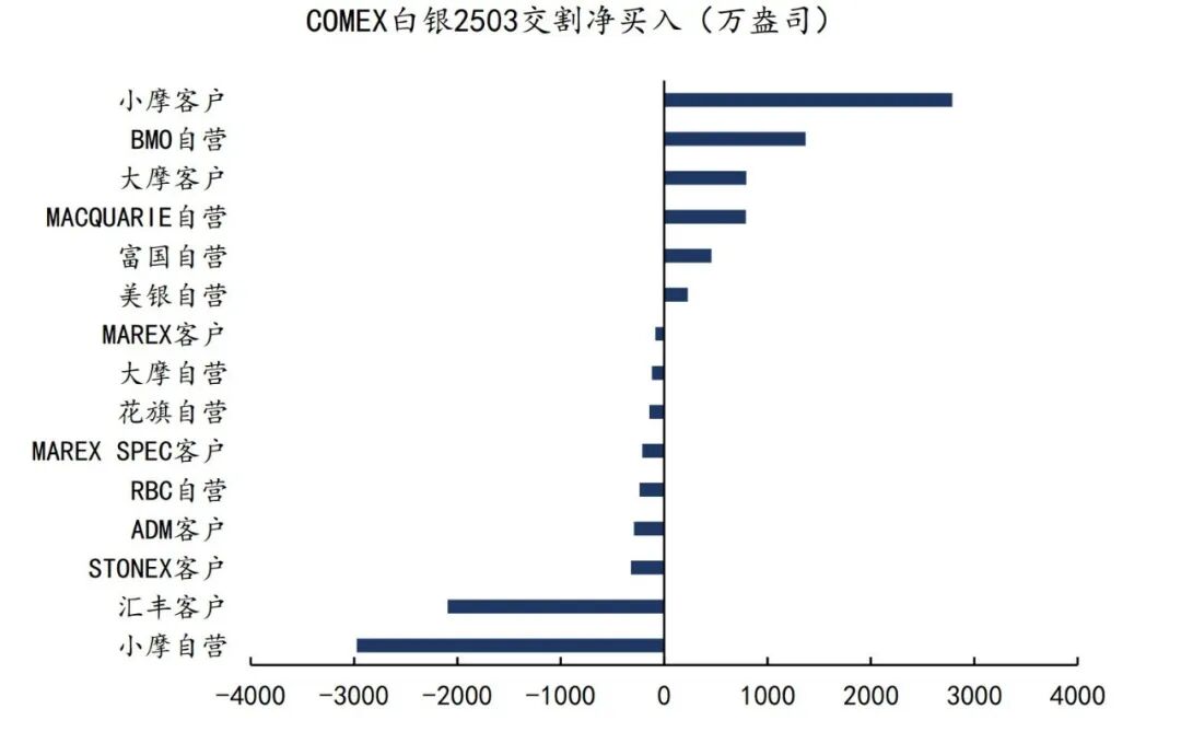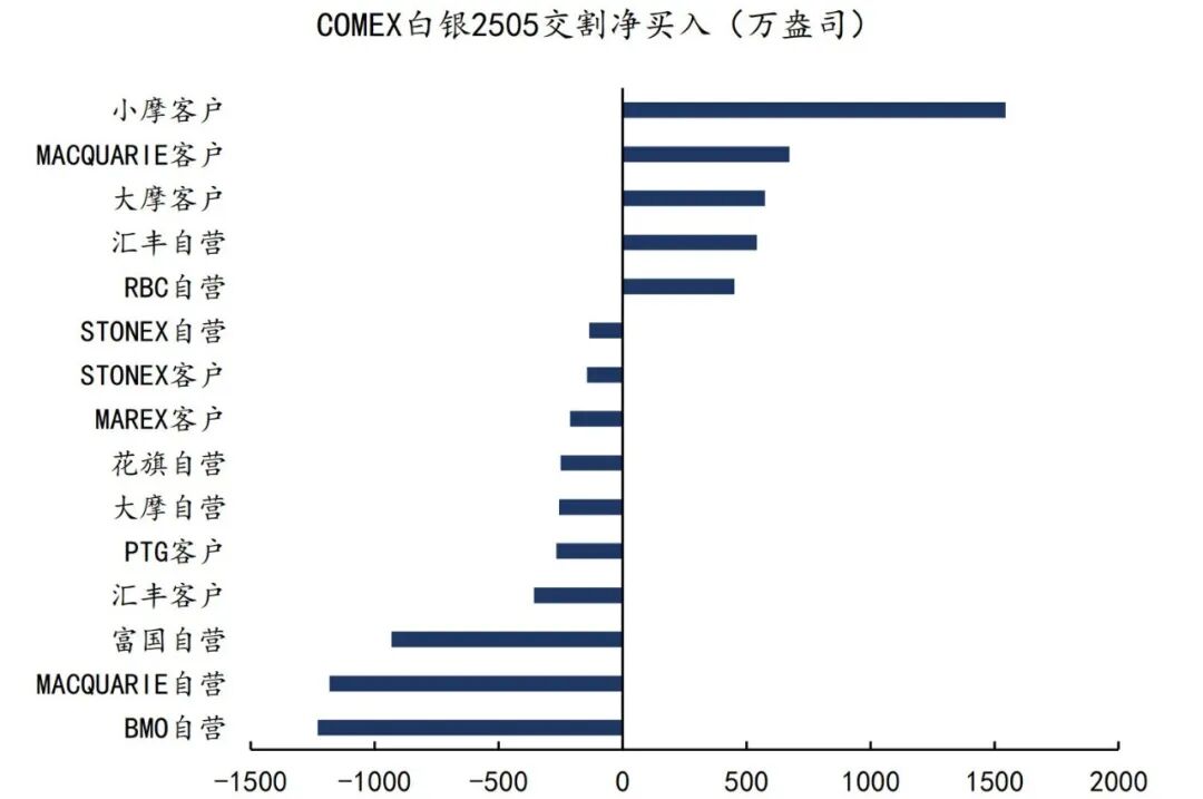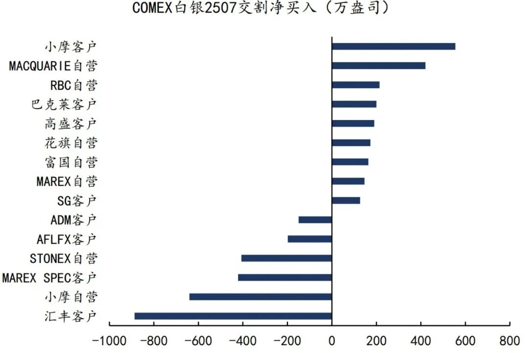 今年前几次白银交割大月,小摩客盘都是市场最大的交割买盘。而且交易商客盘整体呈现净买入态势,自营盘整体呈现净卖出态势。这些现象符合长线资金流入白银市场,而大型交易商自营盘(如小摩、汇丰)卖出控盘的市场叙事。
