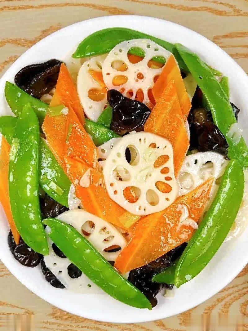5. 加入荷兰豆:将焯水后的荷兰豆放入锅中,与其他蔬菜一起翻炒,翻炒均匀,保持食材的色泽和口感。