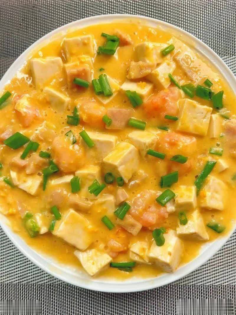食材准备:豆腐 1 块、咸蛋黄 2 个、葱姜适量、盐、鸡精、水淀粉、食用油